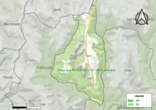 L'occupation des sols de la commune, telle qu'elle ressort de la base de données européenne d’occupation biophysique des sols Corine Land Cover (CLC), est marquée par l'importance des forêts et milieux semi-naturels (73 % en 2018), néanmoins en diminution par rapport à 1990 (78,4 %). La répartition détaillée en 2018 est la suivante : forêts (68,2 %), prairies (18,6 %), zones industrielles ou commerciales et réseaux de communication (8,5 %), milieux à végétation arbustive et/ou herbacée (4,8 %)[22]. L'évolution de l’occupation des sols de la commune et de ses infrastructures peut être observée sur les différentes représentations cartographiques du territoire : la carte de Cassini (XVIIIe siècle), la carte d'état-major (1820-1866) et les cartes ou photos aériennes de l'IGN pour la période actuelle (1950 à aujourd'hui)[Carte 1].