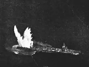Le , il participe à la bataille de l'île Christmas où il est attaqué par trois torpilles sans succès par l'USS Seawolf. Il retourne au Japon le puis entre en cale sèche à l'Arsenal naval de Maizuru du 12 au .