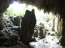 On accède à la grotte par une salle d'entrée haute de quelque 30 m[6]. Sa pente raide a été aménagée par les Mayas qui ont construit des murets. Dans la partie supérieure une terrasse nivelée a été appelée le « Balcon ». C'est dans cette zone que l'on a retrouvé le plus grand nombre d'artéfacts. On y a découvert sept structures, fosses ou enclos maçonnés. Au-delà du Balcon les archéologues ont installé une porte métallique qui donne accès au réseau de galeries long de près de 3 km. C'est dans ces galeries que se trouvent les œuvres d'art rupestre.
