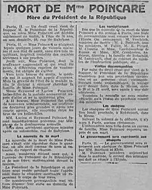 - « Mort de Mme Poincaré », Le Petit Courrier d'Angers, (lire en ligne, consulté le ).