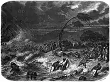 Le , en heurtant un récif, le Saint Paul fait naufrage près de l'île Rossel (Yela)[n 2], dans l'archipel des Louisiades en Nouvelle-Guinée, où l'équipage établit un campement en catastrophe. Mais les marins subissent les attaques répétées des autochtones pendant plusieurs jours et plusieurs nuits. L'équipage finit par s'enfuir et part à la recherche de secours à bord d'une chaloupe à voile de six mètres en pleine mer pendant douze jours, laissant sur l'île les Chinois abandonnés à leur sort, qui seront finalement massacrés par les autochtones[4].