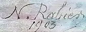 - Bouquet de roses, huile sur toile, 1901, 33,5 x 24,5 cm, signée en bas à gauche[18].