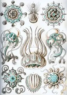 Il existe quelques formes aberrantes sans cloche (comme les Tetraplatidae), en forme de ver, avec quatre sortes de nageoires[3].