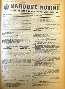 Le Narodne novine, en français le « Journal du peuple », est le journal officiel de la République de Croatie qui publie les lois, règlements, nominations et décisions officielles du domaine public. Il est publié par la compagnie éponyme.