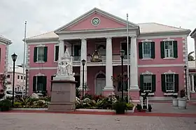![]() ![]() ![]() ![]() De haut en bas et de gauche à droite : le port de plaisance de Nassau, le Fort Fincastle, un quartier de Nassau, le Parlement. |
