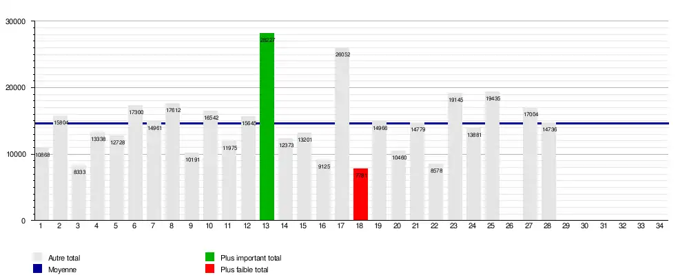 | Avranches | 1 | 4 | 2 | 3 | 4 | 8 | 8 | 11 | 9 | 10 | 10 | 10 | 11 | 9 | 10 | 11 | 13 | 13 | 15 | 15 | 13 | 12 | 11 | 10 | 7 | 8 | 9 | 10 | 10 | 9 | 8 | 6 | 8 | 8 | 3 | 2 |