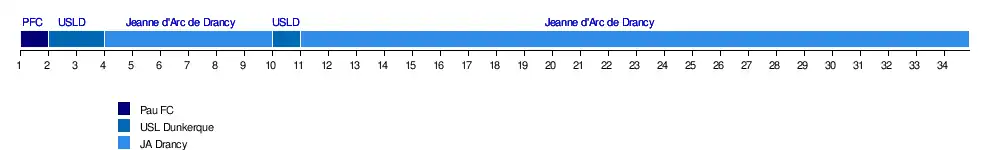 | Rodez | 7 | 15 | 15 | 10 | 12 | 11 | 7 | 5 | 5 | 5 | 2 | 3 | 7 | 3 | 1 | 3 | 3 | 3 | 3 | 3 | 2 | 3 | 2 | 2 | 1 | 1 | 1 | 1 | 1 | 1 | 1 | 1 | 1 | 1 | 23 | 2 |