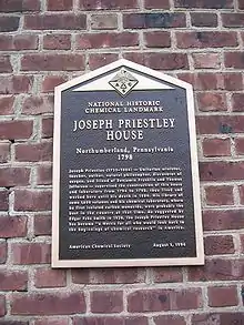 Plaque mentionnant le statut de National Historical Chemical Landmark sur la Joseph Priestley House.