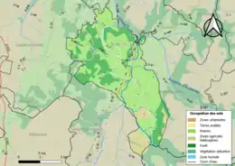 L'occupation des sols de la commune, telle qu'elle ressort de la base de données européenne d’occupation biophysique des sols Corine Land Cover (CLC), est marquée par l'importance des territoires agricoles (71,7 % en 2018), en augmentation par rapport à 1990 (70,3 %). La répartition détaillée en 2018 est la suivante : prairies (62,1 %), forêts (28,3 %), zones agricoles hétérogènes (9,6 %)[19].