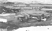 Des tentes ont été montées, un système électrique rudimentaire, des radios et quelques rues rugueuses ont été posées et fin septembre, l'aérodrome militaire d'Adak accueillait plusieurs bombardiers lourds B-17 Flying Fortress du 36e escadron de bombardement, des P-38 Lightning du 54e escadron de chasse et cinq B-24 Liberator des 21e et 404e escadrons de bombardement. D'autres P-38 ont été amenés par avion, ainsi que des P-39D Airacobras du 42e escadron de chasseurs qui assuraient la défense aérienne de Kodiak. Même pendant que les avions se posaient, la construction se poursuivait à un rythme rapide pour recouvrir la PSP de plusieurs couches d'asphalte et construire des installations supplémentaires pour la base[3],[4].