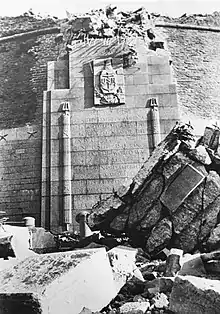 La tour fut détruite par l'armée allemande, pendant l'Occupation, le [1], jour anniversaire de l'indépendance des États-Unis (les États-Unis n'étaient alors pas encore en guerre contre le Troisième Reich, ce qui n'interviendra qu'en décembre 1941). Les Allemands construiront un bunker à son emplacement. Début septembre 1944, alors que les Alliés ont libéré une bonne partie de la France et de la Belgique, le général Pershing, toujours à la tête de l'ABMC, s'inquiéta auprès du général Eisenhower, alors chef des troupes alliées occidentales, de l'état des cimetières et monuments que l'ABMC avait construits[3]. Le , Eisenhower lui répondit : « Je suis heureux de vous rapporter que selon nos rapides premières enquêtes, les monuments et cimetières de guerre américains construits sous votre supervision personnelle, sont intacts et non endommagés. »[3]. Mais ce courrier a été écrit une semaine avant la libération de Brest, Eisenhower ignorait alors la destruction du Naval Monument. La puissance occupante allemande avait affirmé, pour des raisons de propagande, que le monument avait été détruit par un raid aérien de la Royal Air Force[3]. Mais selon l'officier de renseignement américain, le lieutenant-colonel Paul Krznarich chargé de l'enquête, « Selon de nombreux civils français, il a été rapporté de façon crédible et fiable, que des préparatifs à une démolition du monument ont été menés par les Allemands et que cette démolition fut ensuite mise en œuvre durant un raid de nuit de la RAF. »[4]. Le but de cette destruction pouvait être de priver de repère les aviateurs britanniques qui se servaient de la tour et du phare du Portzic comme alignement pour leurs bombardements[5].