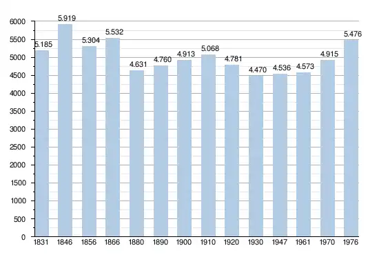 - Source : DGS - Remarque: 1831 jusqu'à 1981=recensement; depuis 1990=nombre d'habitants chaque 1er janvier[5]