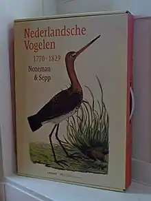 Nederlandsche vogelen; volgens hunne huishouding, aert, en eigenschappen beschreeven door Cornelius Nozeman. Alle naer ’t leeven geheel nieuw en naeuwkeurig getekend, in ’ t koper gebragt en natuurlyk gekoleurd door, en onder opzicht van Christiaan Sepp en Zoon Amsterdam, J.C. Sepp en zoon, 1770.[1]