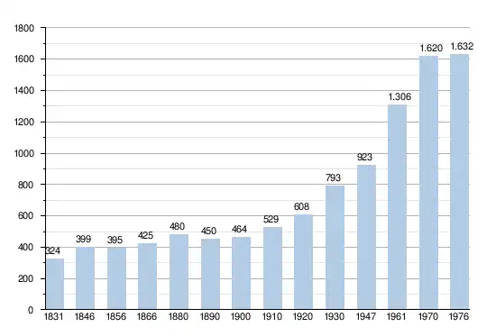 - Sources : INS, Rem. : 1831 jusqu'en 1970 = recensements, 1976 = nombre d'habitants au 31 décembre[2].