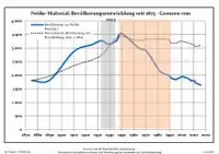 Ligne bleue: Population -- Ligne pointillé: Comparaison avec le développement de Brandebourg