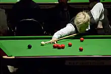 Robertson jouant un coup en chevalet (Masters d'Allemagne 2013).