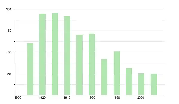 | 1940 | 184 | ▼ −3,66 % | |