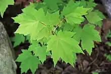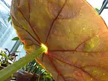 - nervation dictyodrome[13] : les nervures principales se divisent rapidement en nervures secondaires, tertiaires, ... puis disparaissent dans le limbe