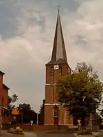 Au cours de la Seconde Guerre mondiale, l'ancienne église fut transpercée par un obus américain, dont le cratère est toujours visible dans le mur.
