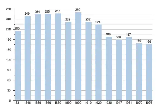 - Source: DGS, 1831 à 1970=recensements population, 1976= habitants au 31 décembre