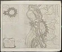 Les défenses sur le Rhin sont révisées ; le fort Saint-Jacques (sur l'île) ainsi que la demi-lune du bout des ponts (en rive gauche), sont profondément remaniés en 1675. Cette dernière prend le nom de fort Mortier. Sur l'île, une enceinte fortifiée (8 fronts bastionnés dotés de 8 bastions plats et 3 demi-lunes, plus 2 cavaliers) et 500 maisons ont été construites pour 1500 habitants. L'existence de la ville est éphémère (1682-1697), du fait de la défaite française à l'issue de la guerre de la Ligue d'Augsbourg. Le traité de Ryswick (1697), stipule en effet, la destruction de l’enceinte et des maisons qui commence l’année suivante pour s’achever en 1699. Au cours de cette démolition, les décombres sont transportés, via un canal creusé spécialement, jusqu'à Neuf-Brisach, autre ville nouvelle, qui est construite entre 1698 et 1702[22].