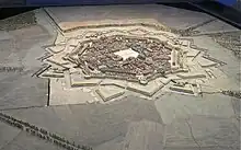 Louis XIV choisit, entre trois projets, une place forte au plan octogonal, avec huit tours bastionnées, couvertes d'autant de contre-gardes, outre les tenaillons, les grandes et petites demi-lunes et autres ouvrages.
