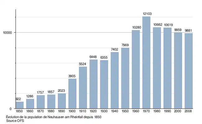 Le graphique suivant résume l'évolution de la population de Neuhausen am Rheinfall entre 1850 et 2008[3] :