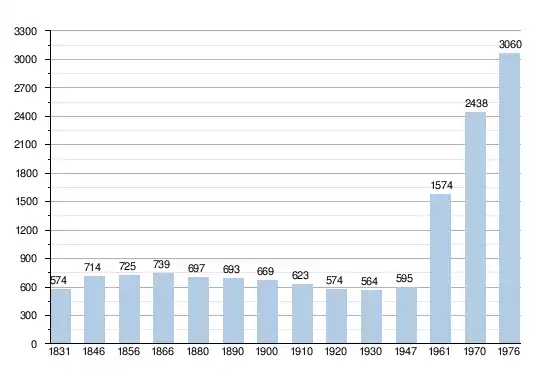 - Sources : INS, Rem. : 1831 jusqu'en 1970 = recensements, 1976 = nombre d'habitants au 31 décembre.