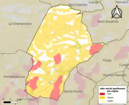 Le retrait-gonflement des sols argileux est susceptible d'engendrer des dommages importants aux bâtiments en cas d’alternance de périodes de sécheresse et de pluie. 80,2 % de la superficie communale est en aléa moyen ou fort (84,7 % au niveau départemental et 48,5 % au niveau national). Sur les 597 bâtiments dénombrés sur la commune en 2019, 492 sont en aléa moyen ou fort, soit 82 %, à comparer aux 86 % au niveau départemental et 54 % au niveau national. Une cartographie de l'exposition du territoire national au retrait gonflement des sols argileux est disponible sur le site du BRGM[22],[23].