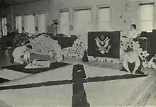 Durant cette période, le quai est reconstruit. Dry Dock 4, une cale sèche en brique et en béton pouvant accueillir des navires jusqu'à 717 pieds (219 m) de long, est planifiée en 1900 et construite entre 1905 et 1913. Pendant la construction, de graves problèmes avec les sables mouvants provoquent la mort de 20 ouvrier et en blessent 400 autres[83]. Après l'abandon du projet par cinq constructeurs privés différents, le gouvernement fédéral intervient pour achever les travaux. Le Dry Dock 4 devient connu sous le nom de « Hoodoo dock »[note 1],[83],[84]. Parallèlement à la construction de la cale sèche 4, il est également proposé d'allonger la cale sèche en bois numéro 3 de 668 à 800 pieds (204 à 244 m) de long[85]. Divers bâtiments sont également construits : un bureau des payes, un atelier, un entrepôt de construction et de réparation et un hangar à ocomotives pour le système ferroviaire aujourd'hui disparu du Navy Yard. En 1914, le Navy Yard s'étend sur une superficie de 114 acres (46 ha)[33].