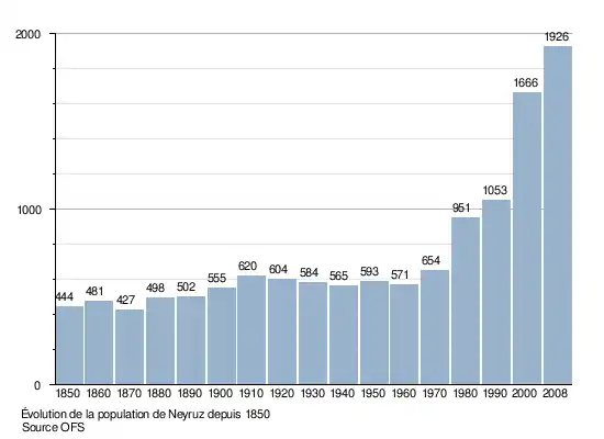 Le graphique suivant résume l'évolution de la population de Neyruz entre 1850 et 2008[5] :