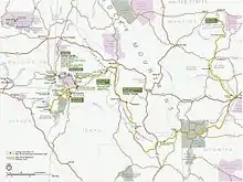 Le , après la découverte de la source du Missouri, l'expédition se déplace vers l'ouest pour trouver la voie navigable du Columbia qui doit les mener jusqu'au Pacifique. Ils doivent franchir les redoutables monts Bitterroot entre les États actuels du Montana et de l'Idaho, « les montagnes les plus terribles jamais rencontrées. »[6]