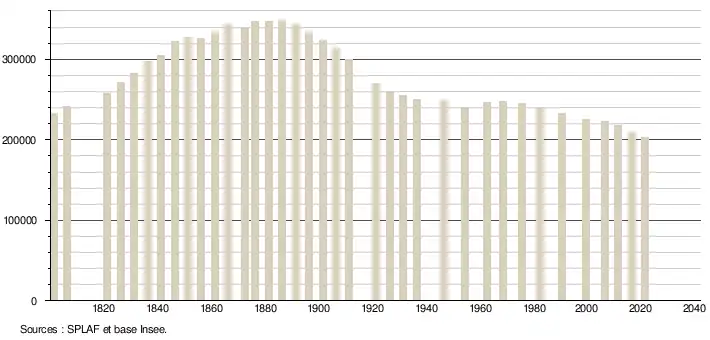 En 2021, le département comptait 202 417 habitants[Note 2], en diminution de 4,41 % par rapport à 2015 (France hors Mayotte : +1,84 %).