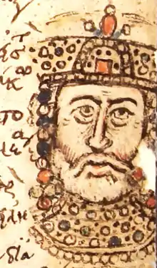- Staurakios (né vers 778) est rapidement couronné co-empereur et associé à son père dans le gouvernement de l'Empire, en vue de sa succession. Pour lui trouver une épouse, Nicéphore organise un concours de beauté, une pratique usuelle à l'époque et sélectionne une femme du nom de Théophano, parente d'Irène l'Athénienne. Par ce choix, Nicéphore espère peut-être renforcer sa légitimité en associant sa famille avec celle de l'impératrice qu'il a renversée mais qui était soutenue par des membres de l'aristocratie et du clergé[119]. Brièvement empereur après la mort de son père, Staurakios décède quelques mois plus tard des suites de ses blessures.