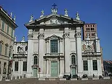 Nicolò Baschiera est chargé, après concours public, de concevoir la façade de la cathédrale de Mantoue qui est reconstruite entre 1756 et 1761.
