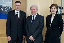 Sir Bratza avec le premier ministre Valdis Dombrovskis et la juge lettone Ineta Ziemeli.