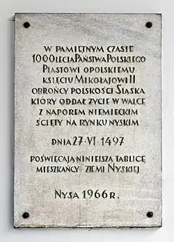 En juin 1497, une assemblée se réunit à Nysa (all. Neisse ou Neiße ) afin d'évoquer le risque d'une invasion ottomane dans le royaume de Hongrie mais aussi pour mettre fin aux conflits latents entre les duchés d'Opole et de Cieszyn. Cette convention réunit en outre, Nicolas II d'Opole, Casimir II de Cieszyn, Victor de Poděbrady comte de Glatz et son frère Henri Ier de Poděbrady dit l'Aîné, duc de Ziębice ainsi que le Prince-évêque de Wrocław, Jan IV Roth.