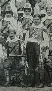 - Jacques Godenne (Godenne, 1901, p. 15) n'indique pas la date de réalisation des costumes, mais Félix Rousseau (Rousseau, 1968, p. 32) donne, sans l'étayer, la même date que la création du groupe : 1843 .
