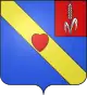 D'azur à la bande d'or chargée d'un cœur de gueules ; au canton des barons propriétaires brochant. |