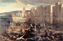 Le chevalier Roze déblayant la Tourette au plus fort de la peste. Peinture de Michel Serre