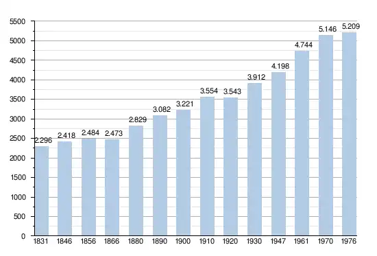 - Sources : INS, Rem. : 1831 jusqu'en 1970 = recensements, 1976 = nombre d'habitants au 31 décembre[3].