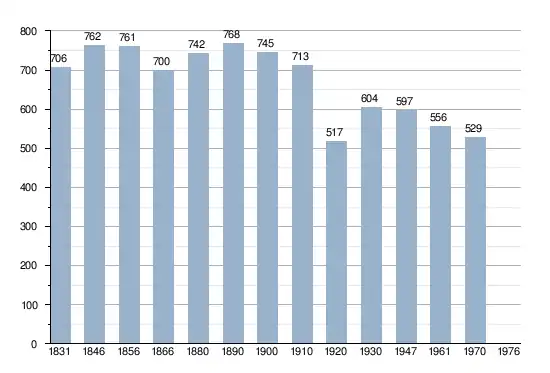 - Sources : INS, Rem. : 1831 jusqu'en 1970 = recensements, 1976 = nombre d'habitants au 31 décembre[3].