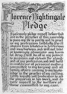 Le Nightingale Pledge (ou Comité Nightingale) était composé par un groupe dirigé par Lystra Gretter, formatrice en soins infirmiers au Harper Hospital à Détroit, Michigan, États-Unis d'Amérique.