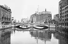 La rivière Nihonbashi et le pont éponyme, sous la voie rapide qui couvre la majeure partie de la rivière. | |