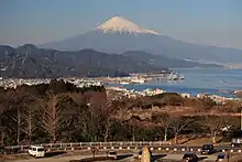 Le mont Fuji et le port de Shimizu vus de Nihondaira