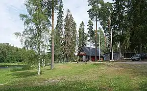 Le pavillon de loisirs en plein air de Niihama était à l'origine une habitation pour des personnes évacuées de la Carélie finlandaise. Elle a été construite par la famille Olkinuora qui a dû partir de Kaukola dans l'Isthme de Carélie après la guerre de Continuation. La ville de Tampere a acheté l'espace à la famille dans les années 1960, après quoi différents entrepreneurs ont été responsables de l'exploitation du café. Le sentier de randonnée de Kauppi à Atala et Kangasala passe devant la maison.