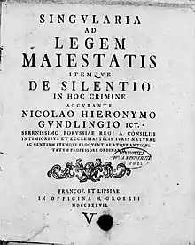 - (la) Singularia ad legem maiestatis itemque de silentio in hoc crimine, Francfort-sur-le-Main, Johann Heinrich Gross, (lire en ligne)