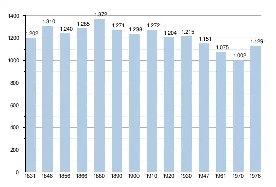 - Sources:INS, Rem:1831 jusqu'en 1970=recensements, 1976= nombre d'habitants au 31 décembre