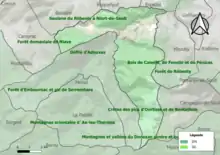 - les « montagnes et vallées du Donezan centre et ouest » (8 618 ha), couvrant 12 communes dont 7 dans l'Ariège, 3 dans l'Aude et 2 dans les Pyrénées-Orientales[20] ;
