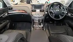 Elle est commercialisée à l'extérieur du Japon sous le nom de Infiniti M et peut alors recevoir un V8 sur certains marché (États-Unis, Russie) ou un V6 diesel (Europe).